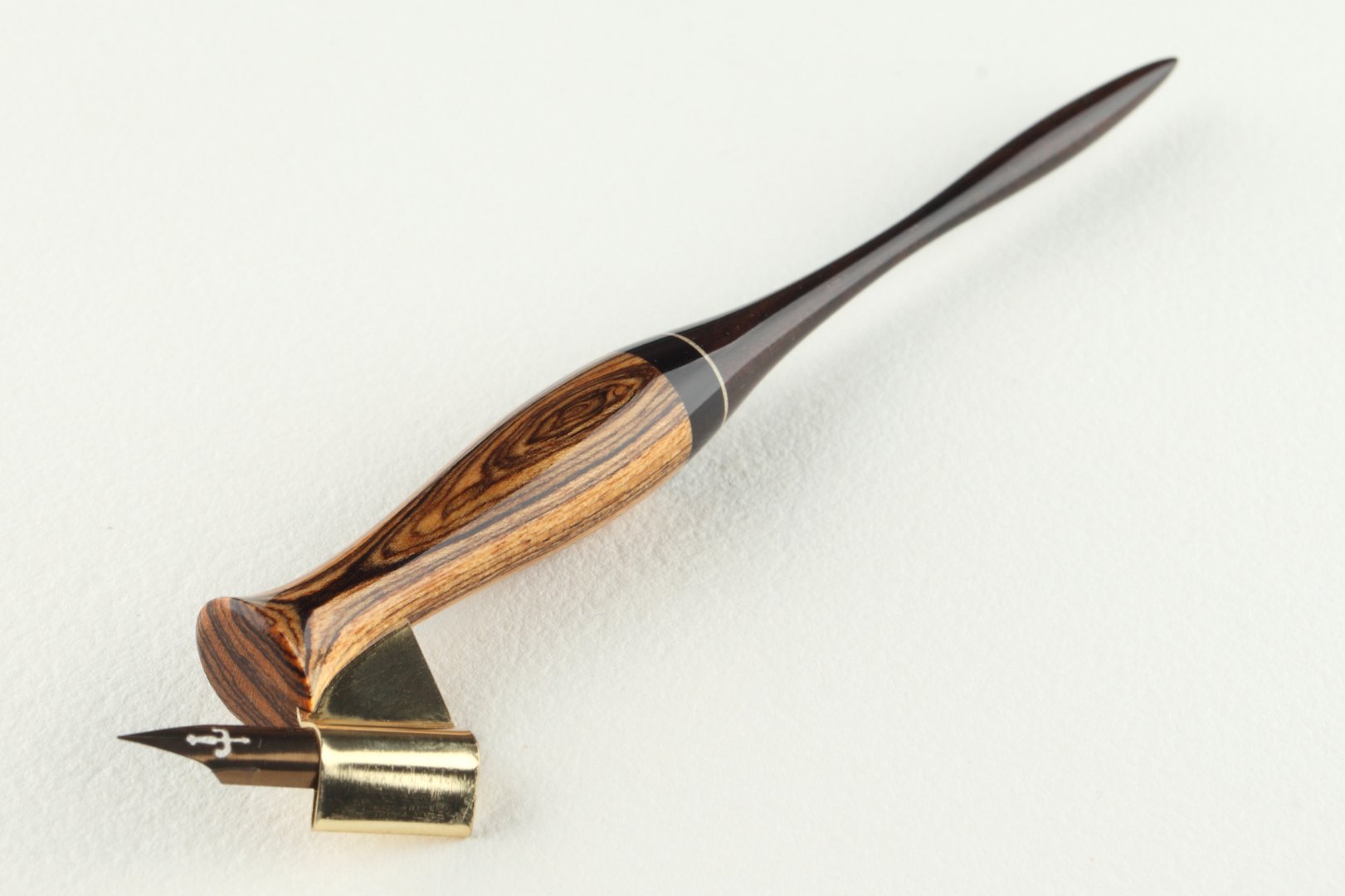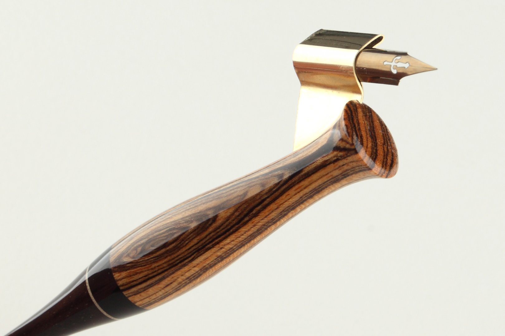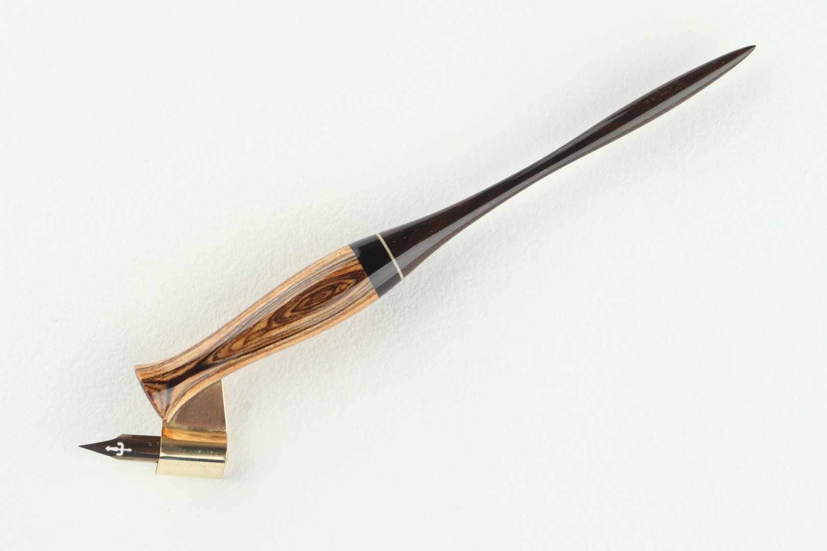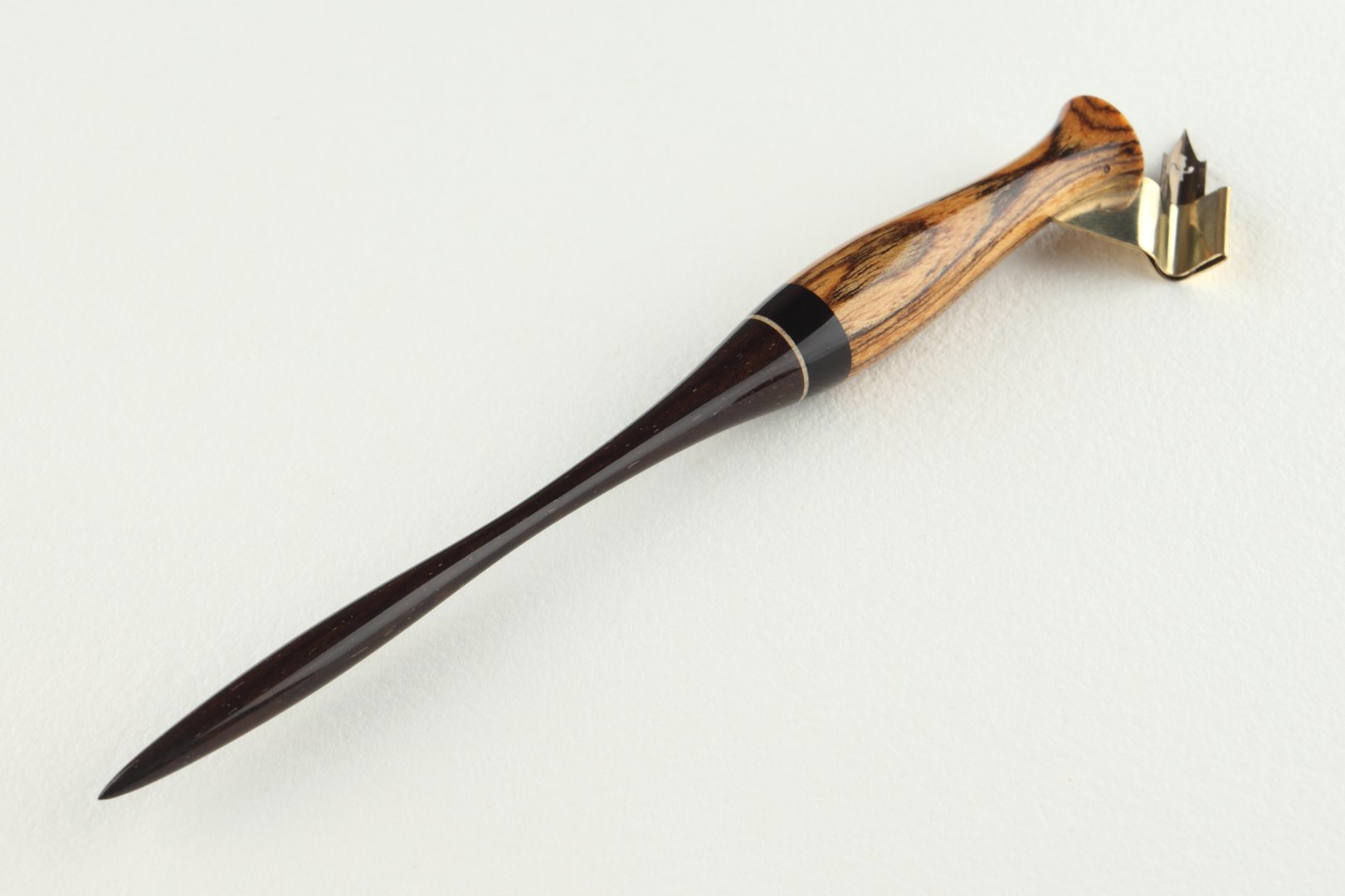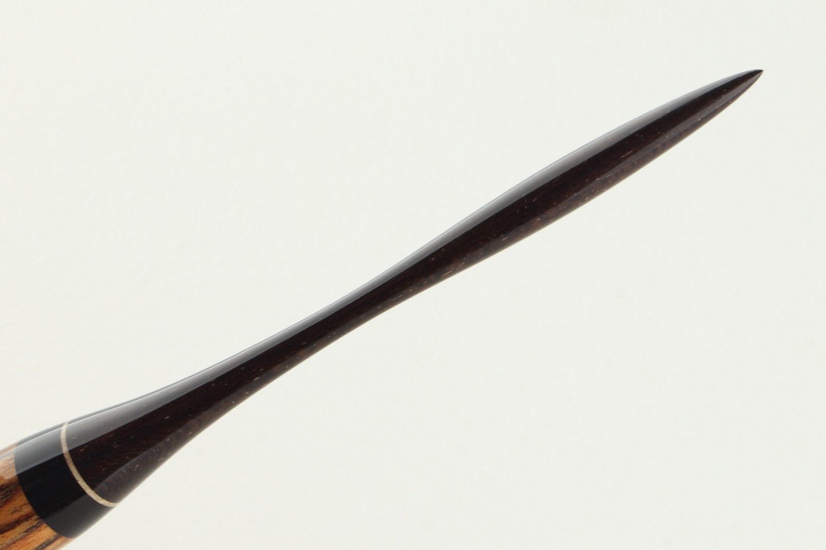 Pen holder made of bocote, gabon ebony and brazilian ebony wood, bright inset is made of maple wood.