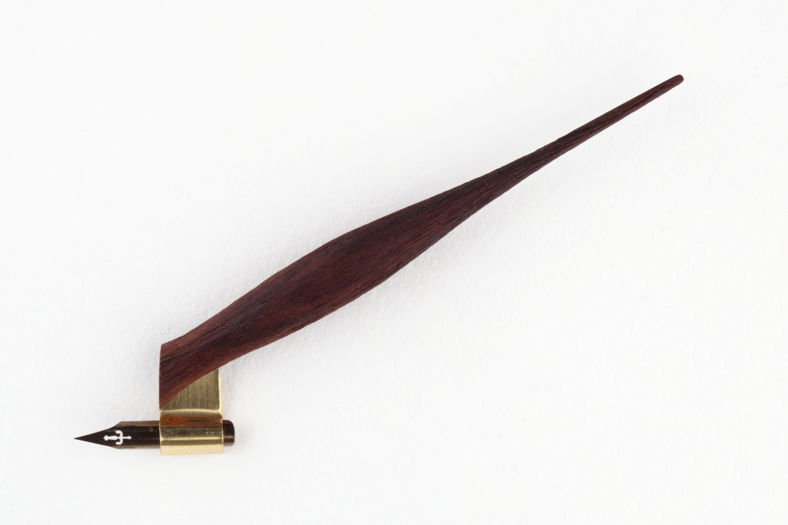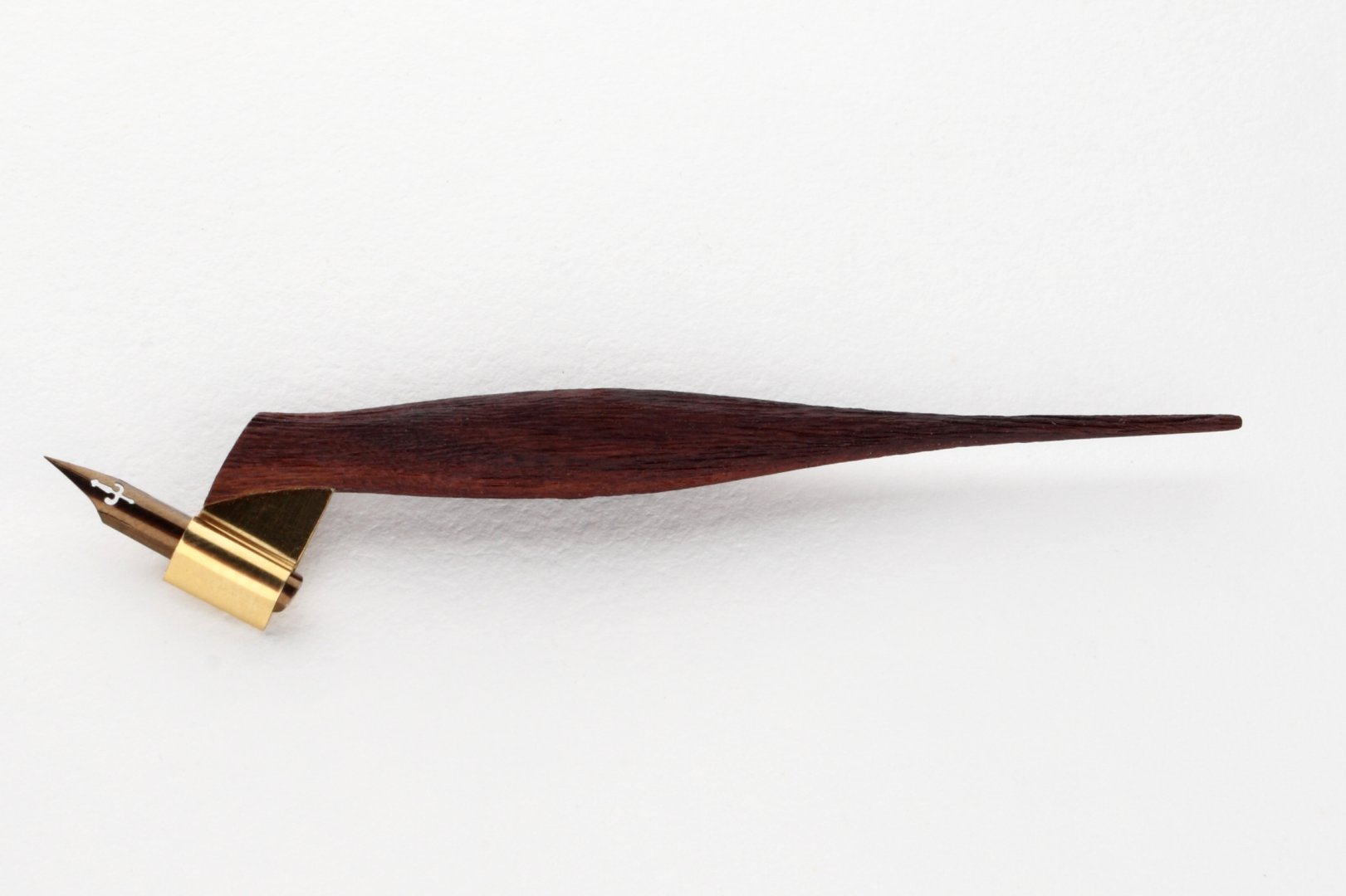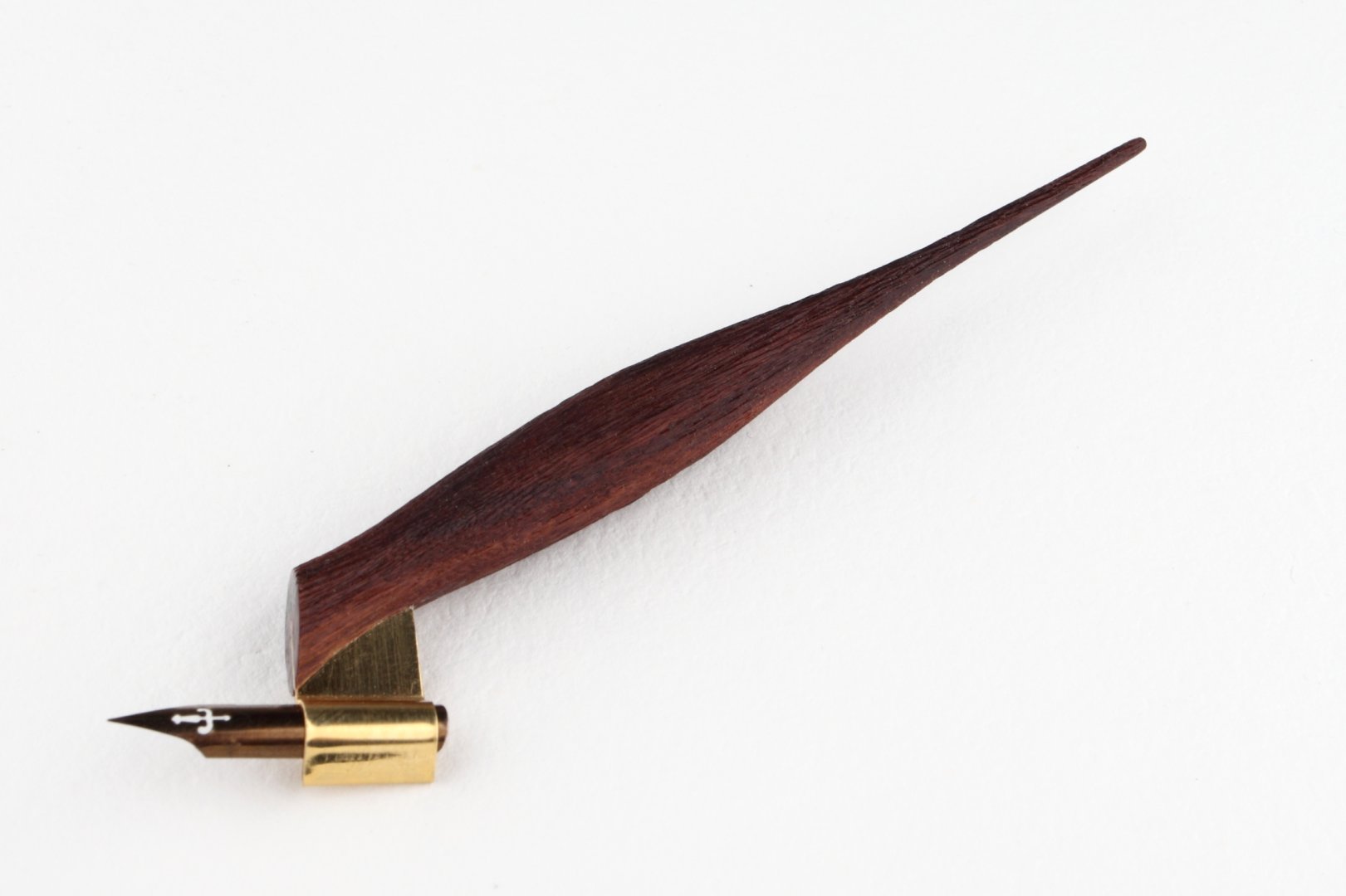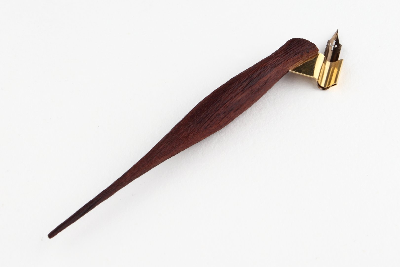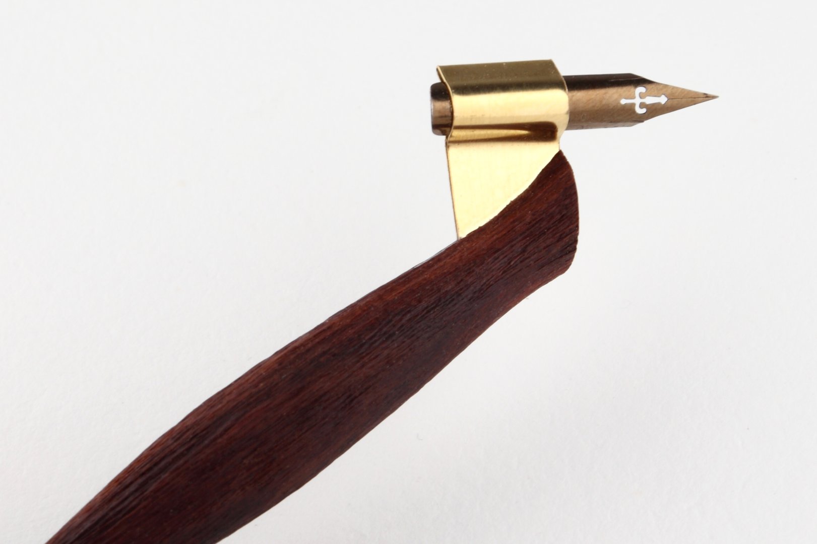 Oblique pen holder made of pau ferro wood and finished with natural linseed oil.