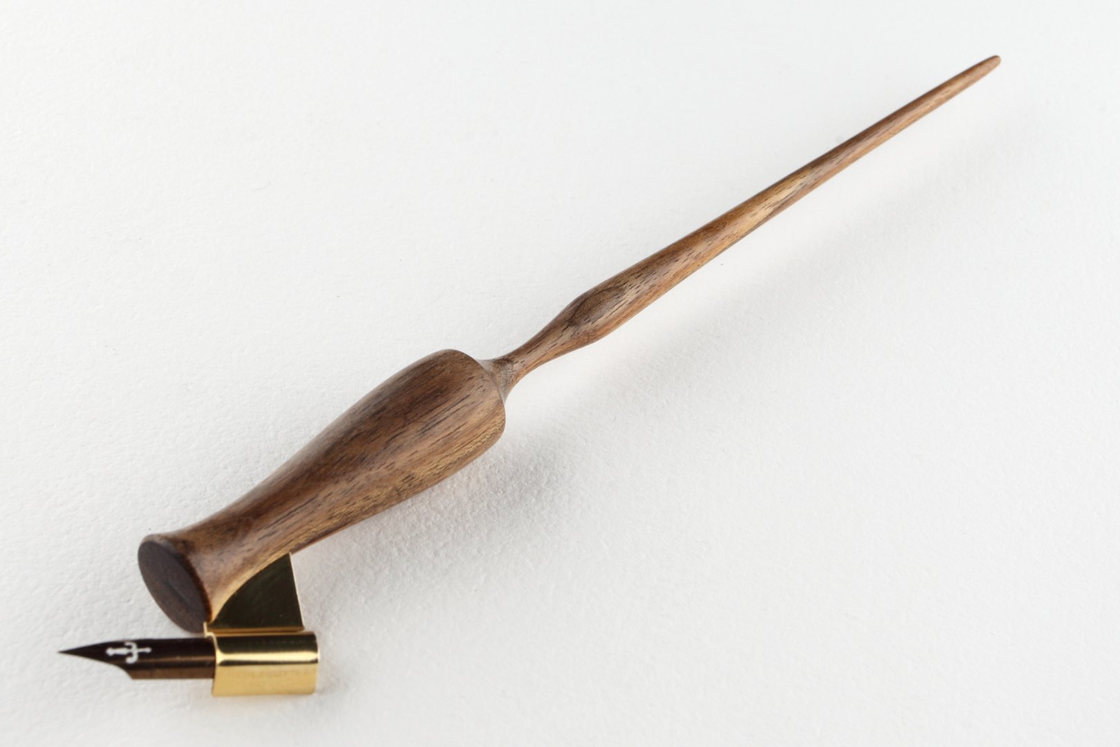 Pen holder made of Amazaque wood and finished with natural wax. Nib flange is made of brass.