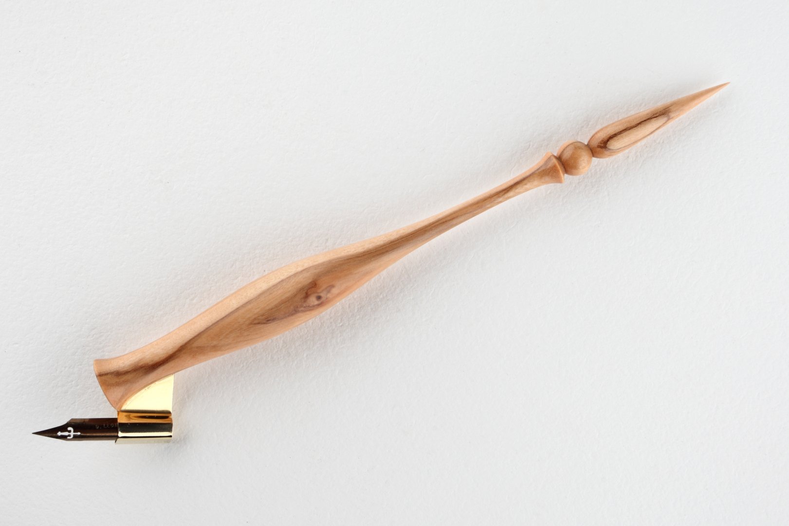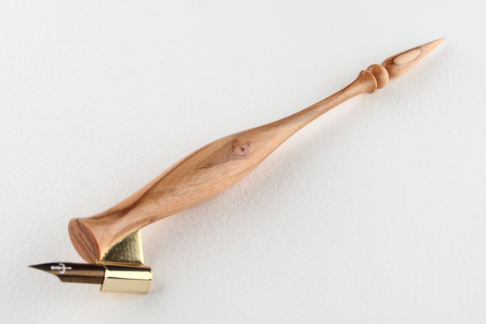 Pen holder made of olive wood and finished with high quality wax. Nib flange is mafe of brass.