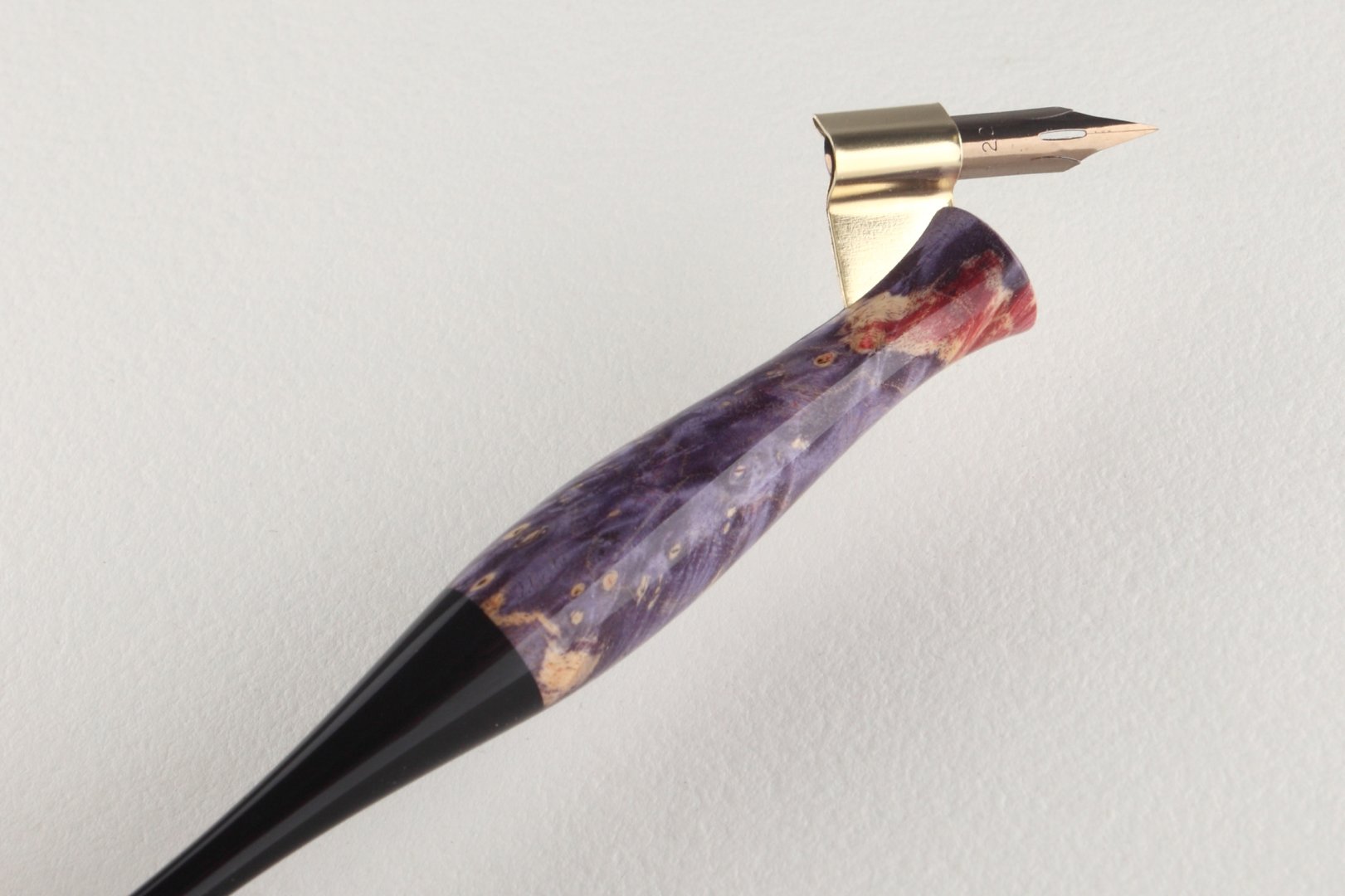 Pen holder made of stabilized maple burl and african ebony wood.