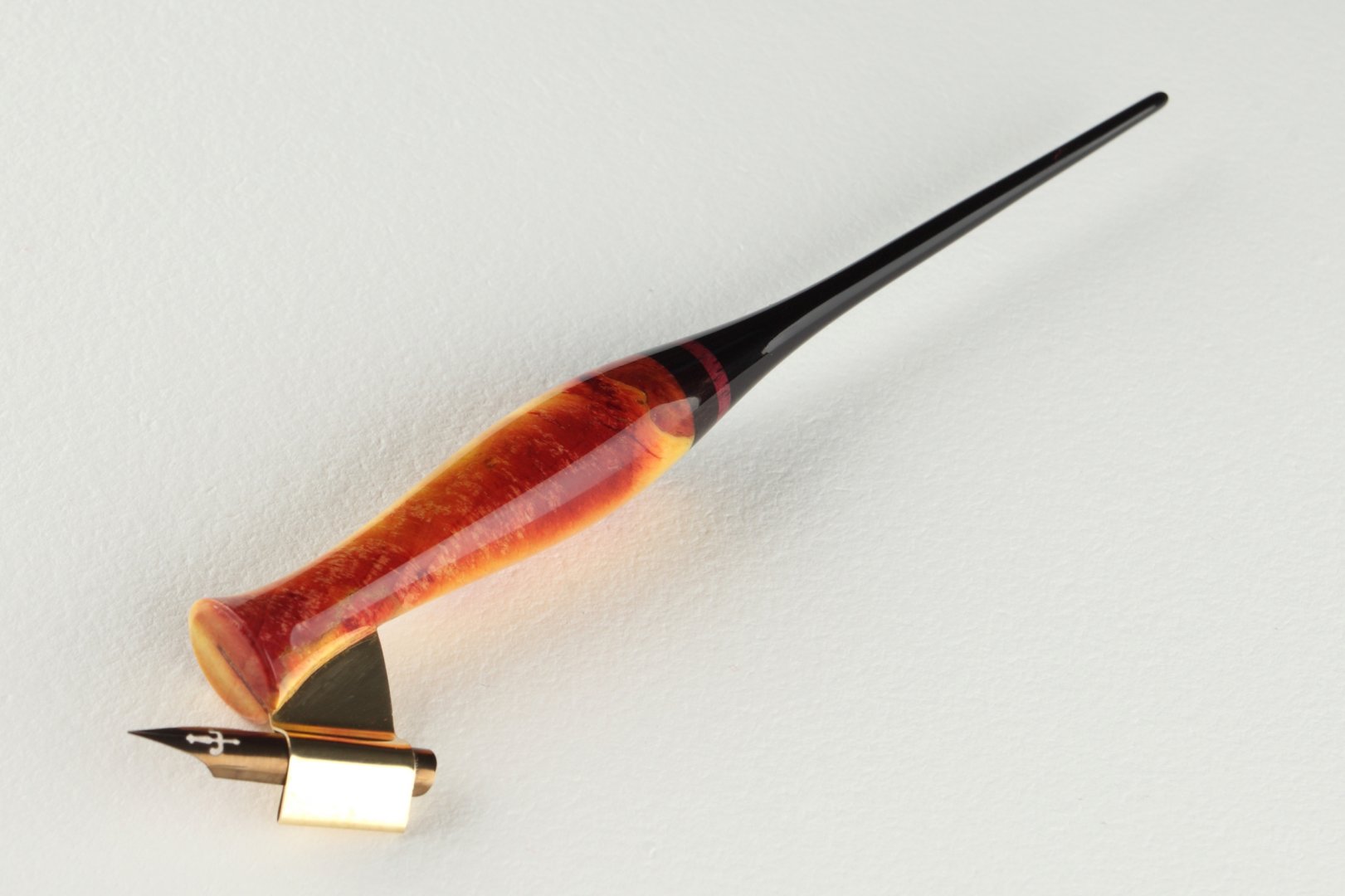 Pen holder made of stabilized burl of birch wood, amaranth wood and african ebony wood.
