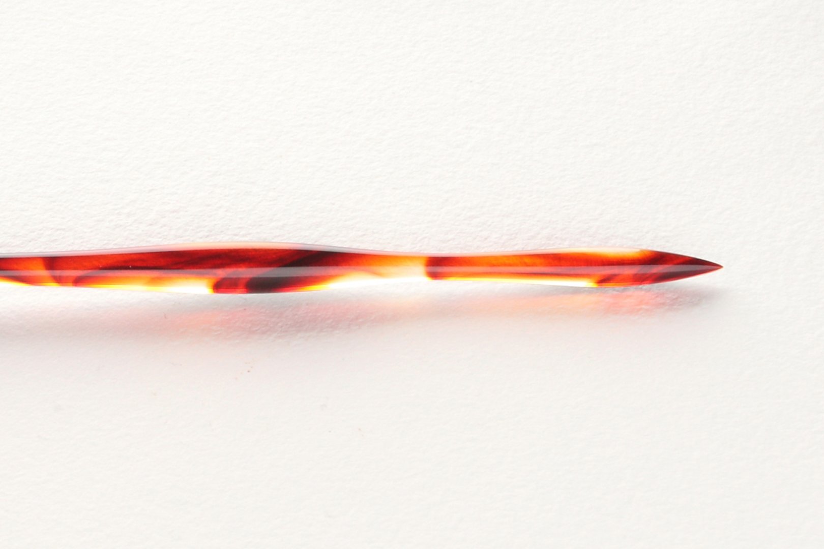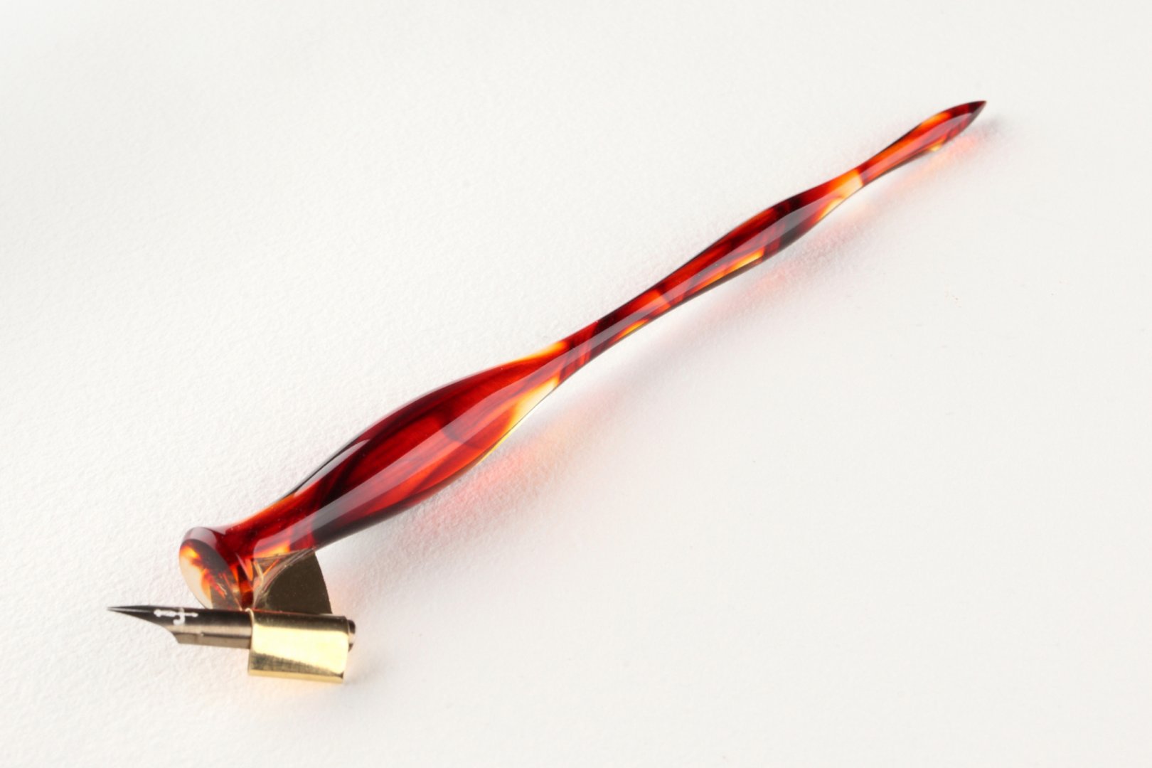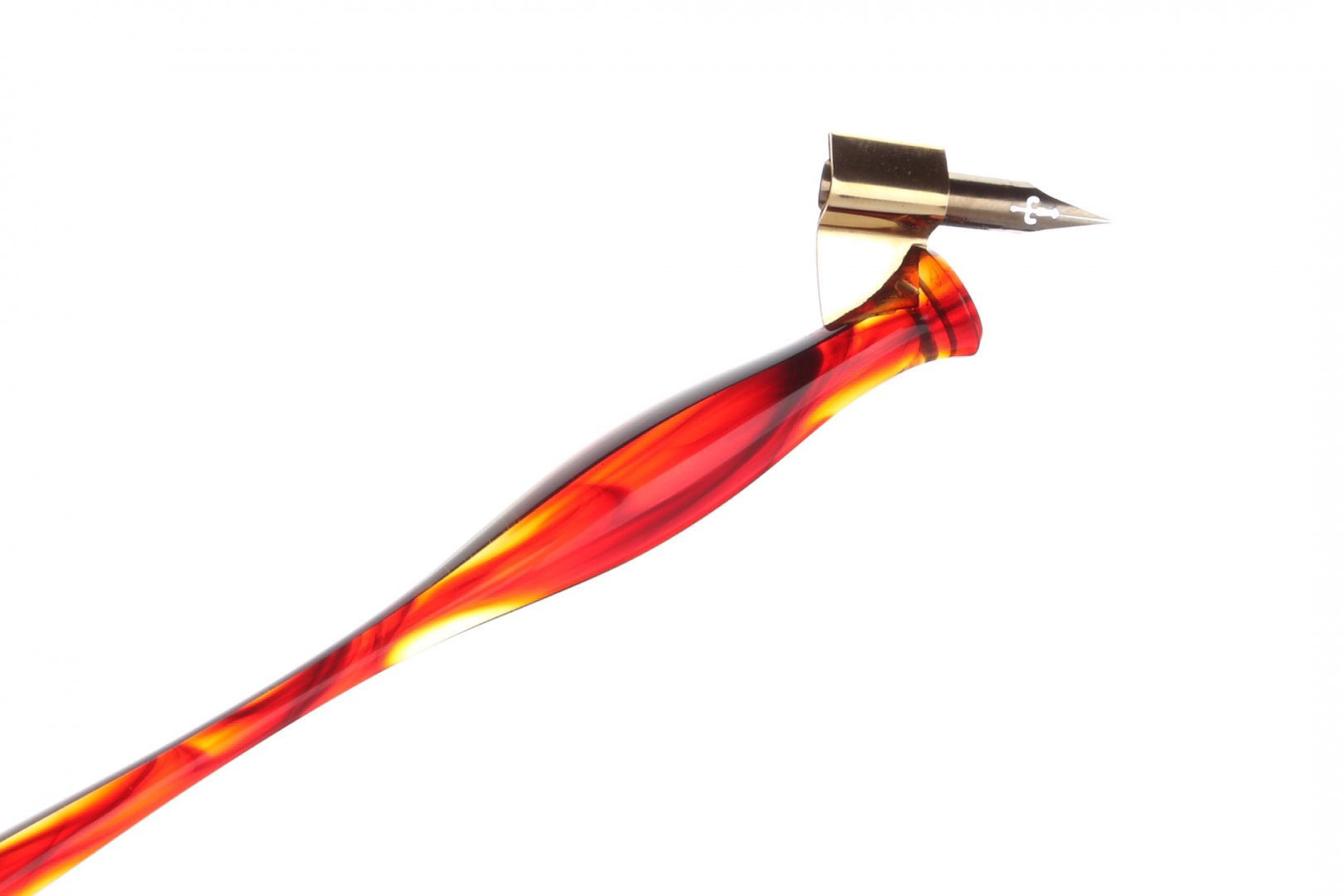 Pen holder made of 19th century french lucite in beautiful amber colour. Carefully polished to a high gloss, nib flange is made of brass.