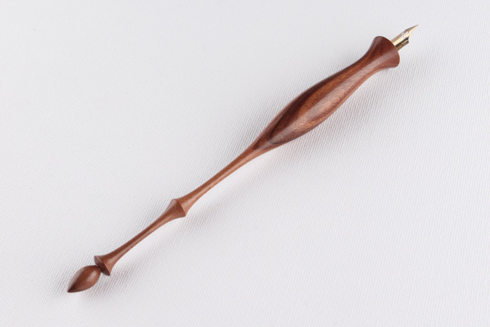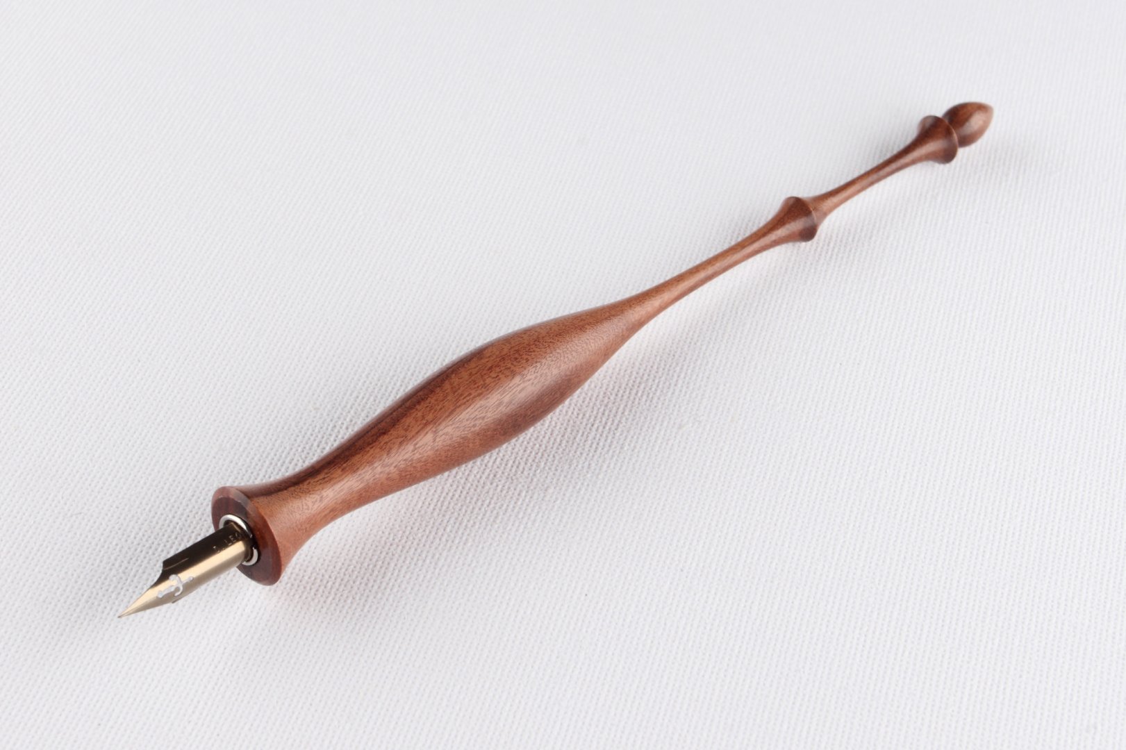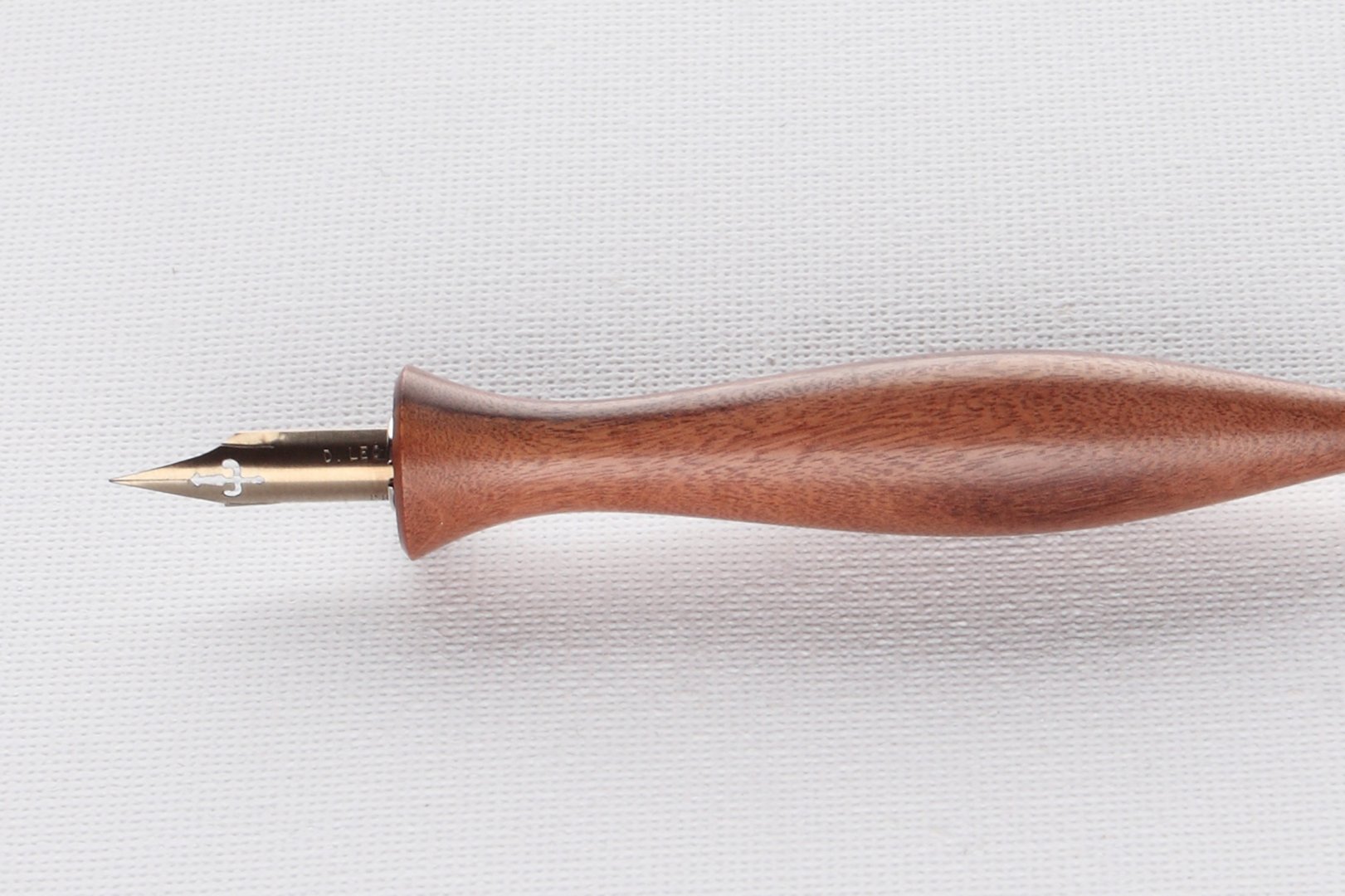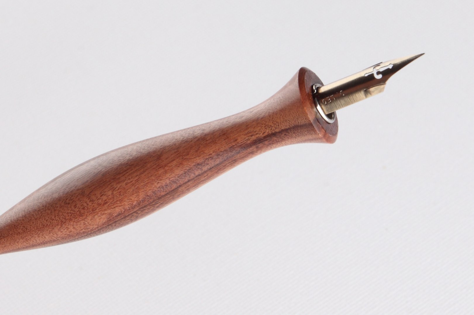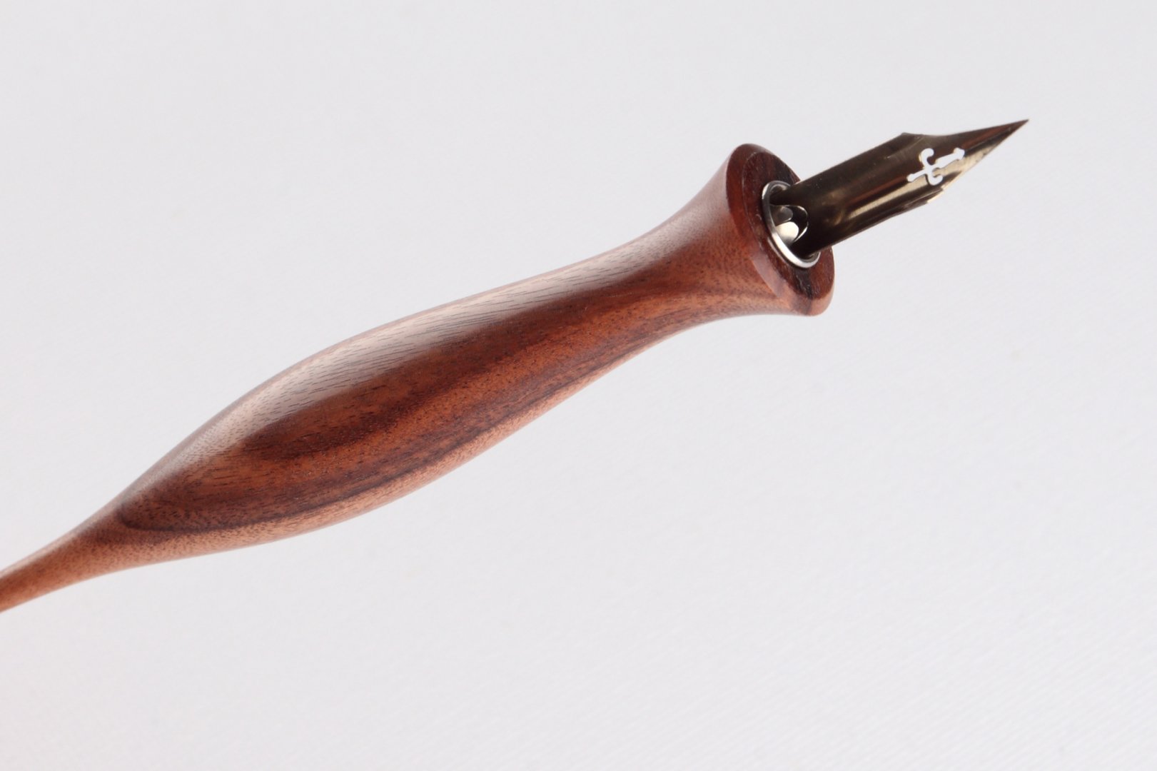 Straight pen holder made of palisander wood with wax finish. Equipped with a stainless steel ferrule.