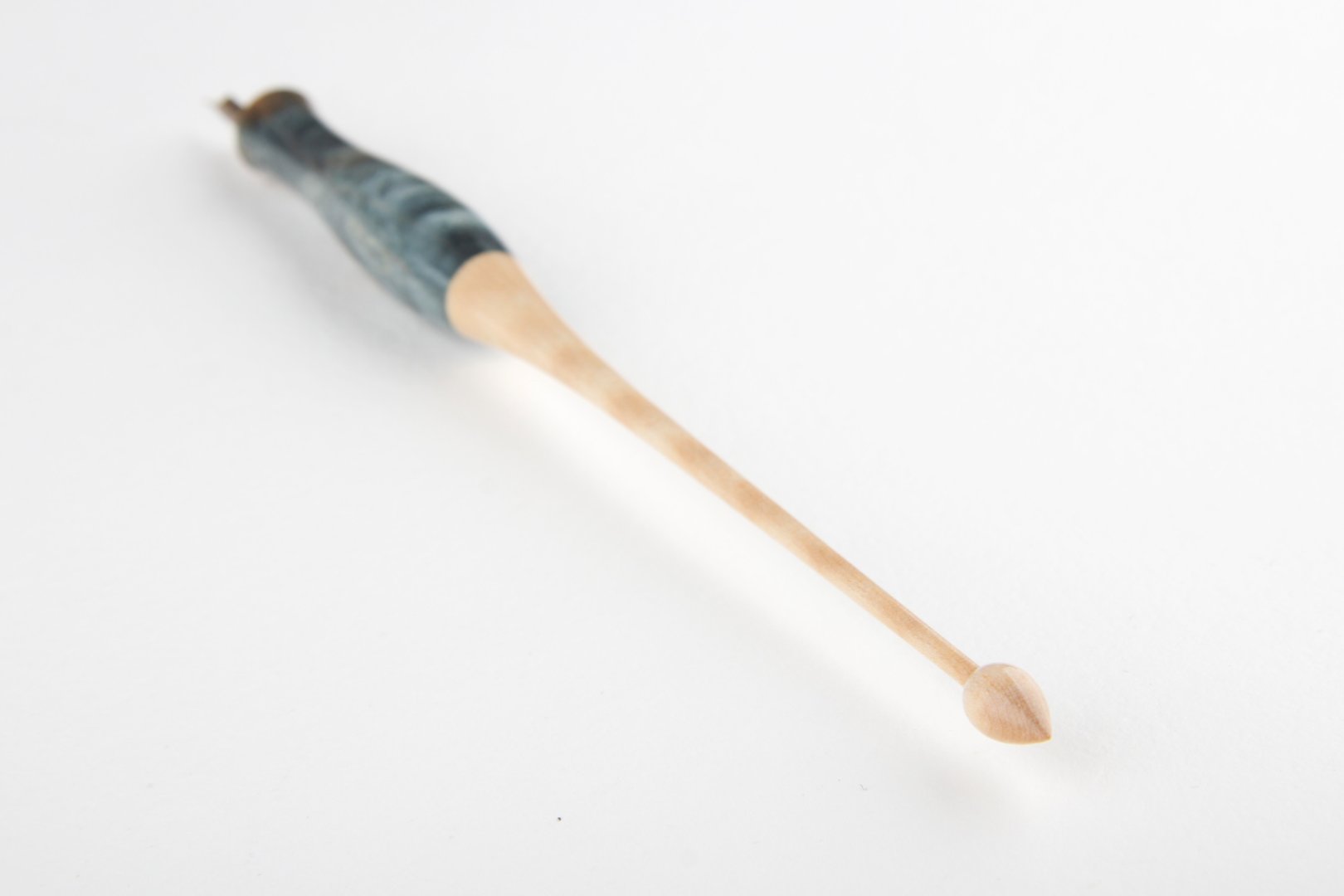 Straight pen holder made of stabilized maple burl and curly maple wood. Finished with 10 layers clear coat polished to a high gloss.